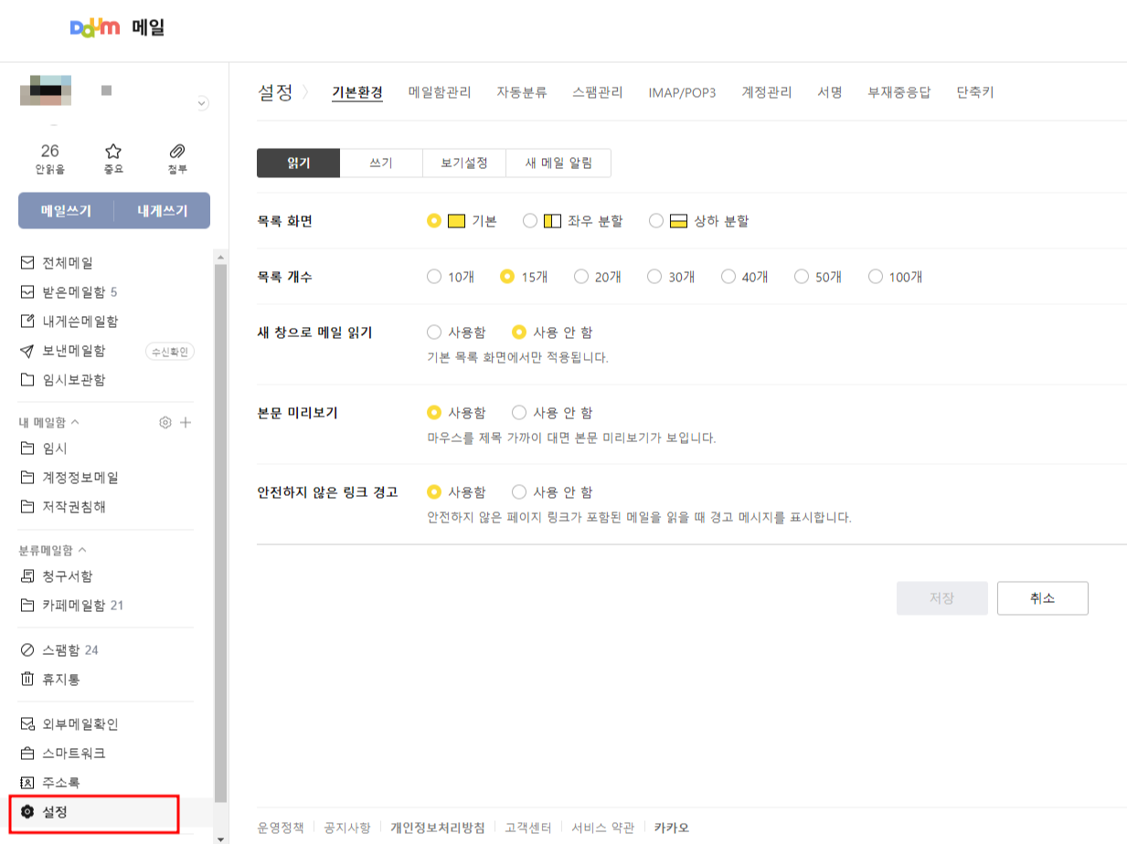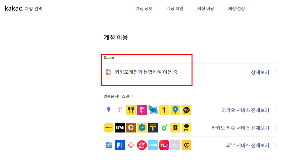 단, 이 방식은 다음 메일이 독립적인 경우에만 가능합니다. 카카오 가입 시 자동으로 만들어진 다음 계정은 연결을 끊을 수 없습니다.