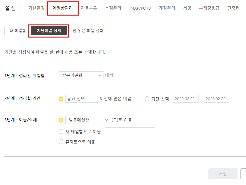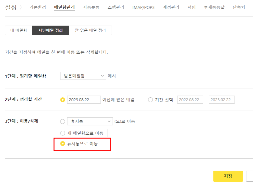 - 메일 선택 → ‘편지 이동’ 버튼 클릭