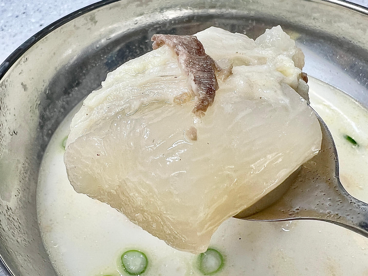 오래 끓인 후 국물이 탁하고 끈적한 젤라틴 질감이 느껴진다면 제대로 끓인 것입니다.