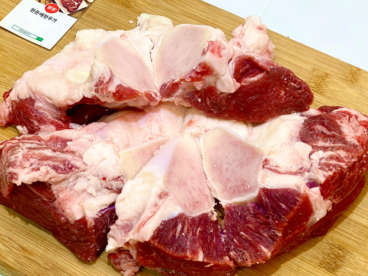 도가니가 너무 크면 반으로 잘라주면 조리시간이 단축되고 육수가 더 잘 우러납니다.