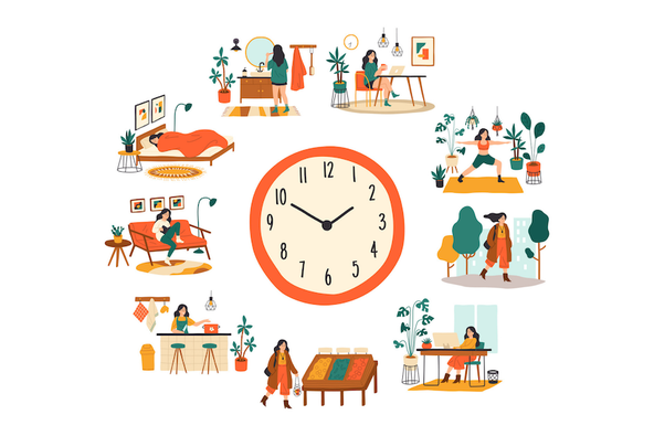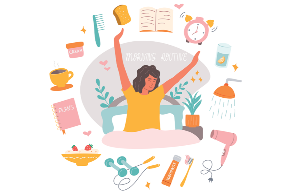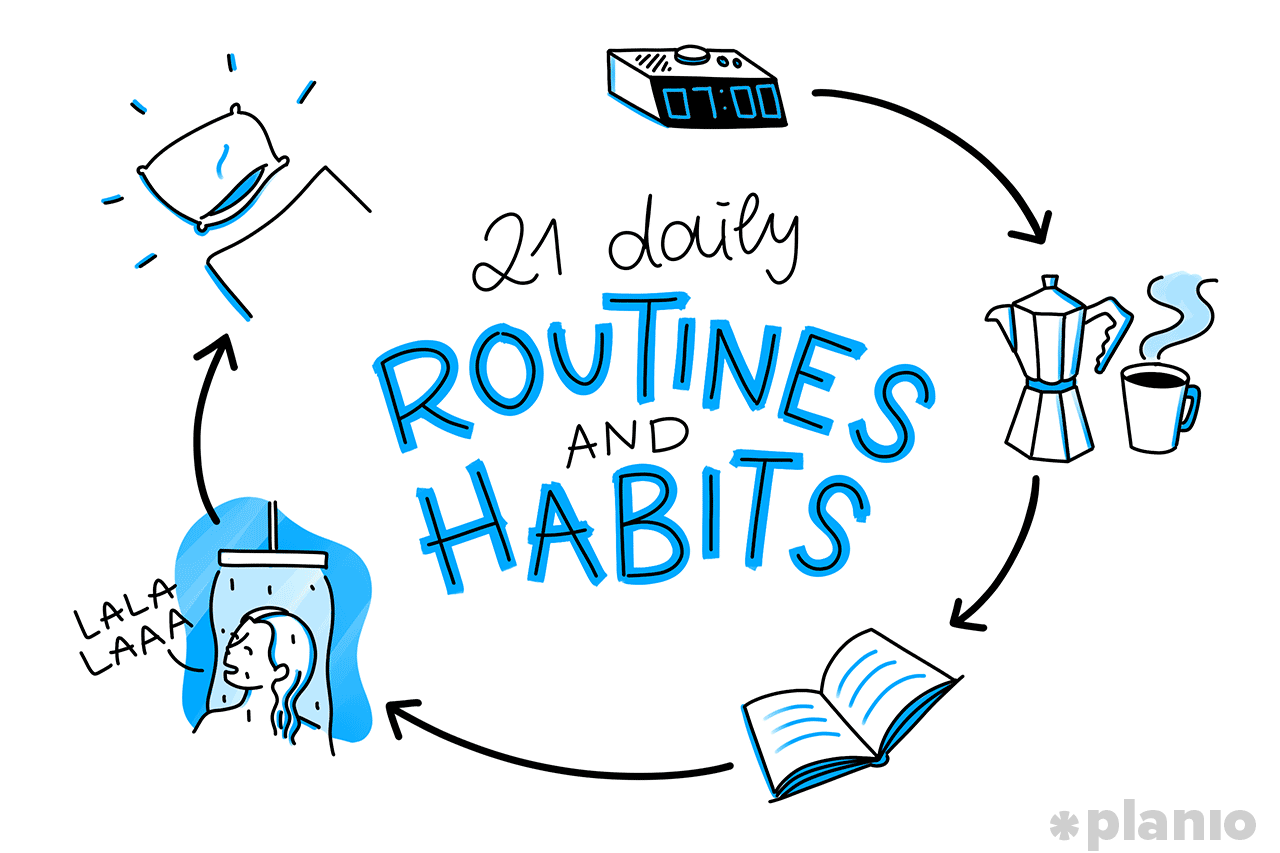 - 아침에 일어나 세수를 하고, 커피를 마시고, 출근 준비를 하는 과정처럼 매일 반복하는 일정한 생활 패턴을 가리킵니다.