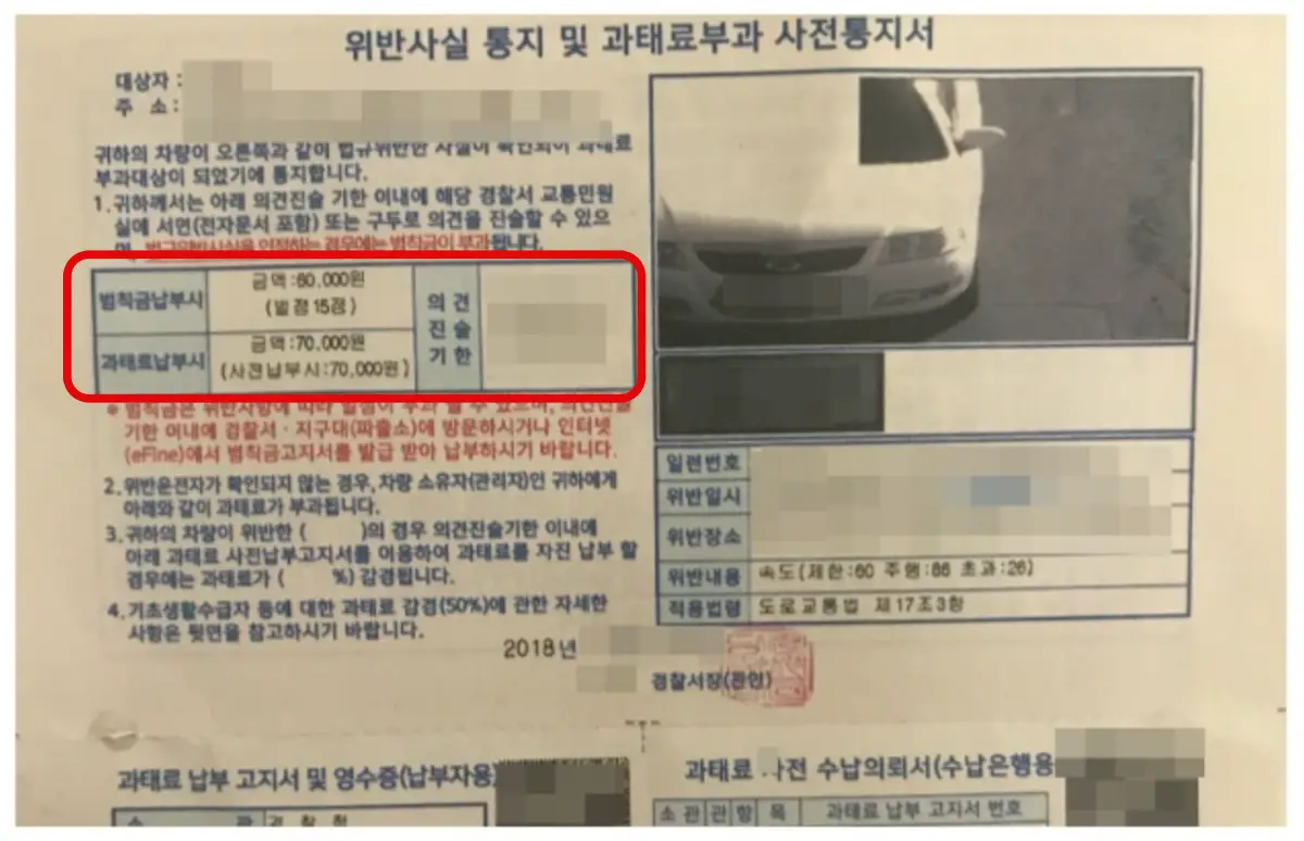 - 부과 대상: 운전자가 직접 단속 경찰관에게 적발되었을 때