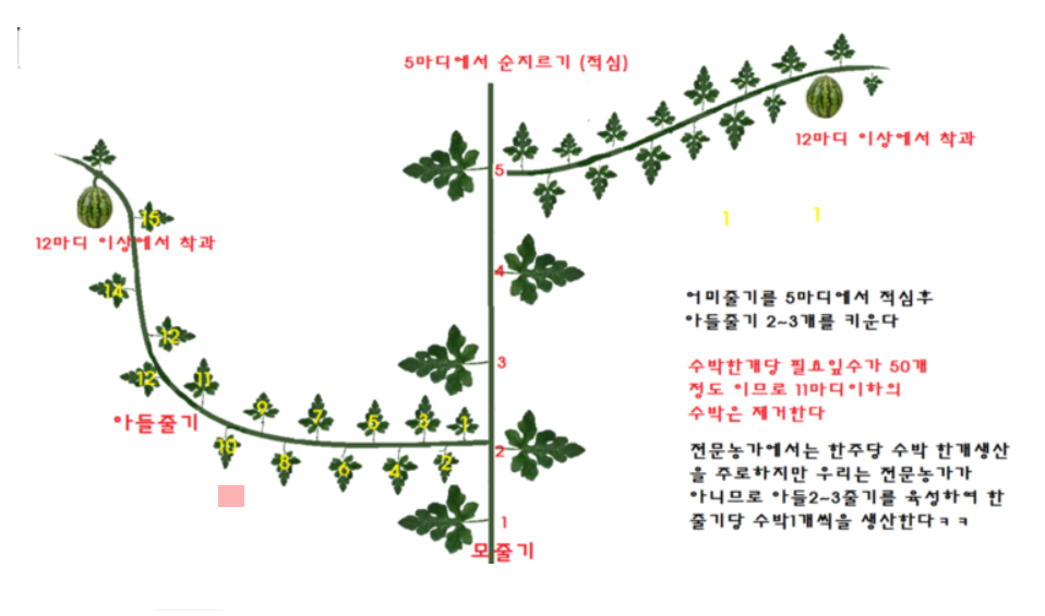 수박 순치기 방법, 애플수박 순 지르기 그림