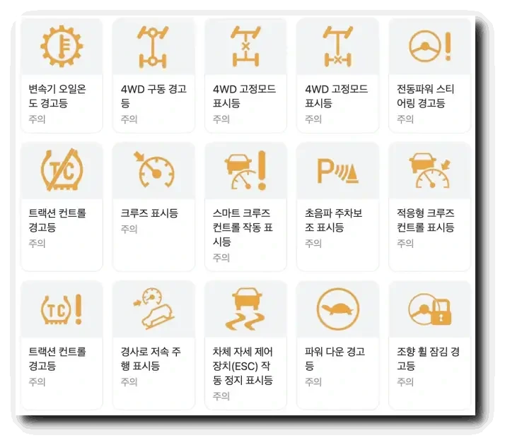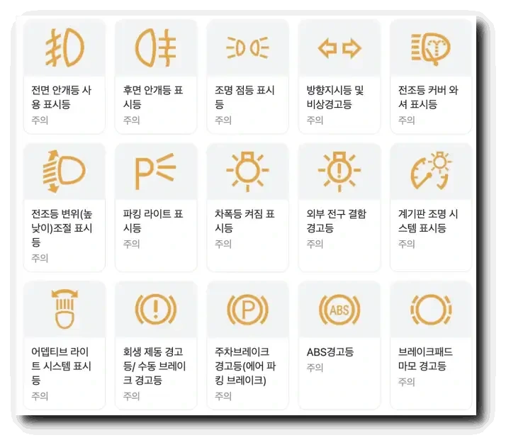 이번 글에서는 자동차 경고등 종류 64가지를 하나하나 구체적으로 정리하고, 각각이 나타내는 의미와 운전자가 취해야 할 올바른 대처 방법까지 설명하겠습니다. 단순한 나열이 아니라 실제 상황에서 활용할 수 있도록 상세하게 풀어드릴 테니, 안전 운전에 도움이 되길 바랍니다.