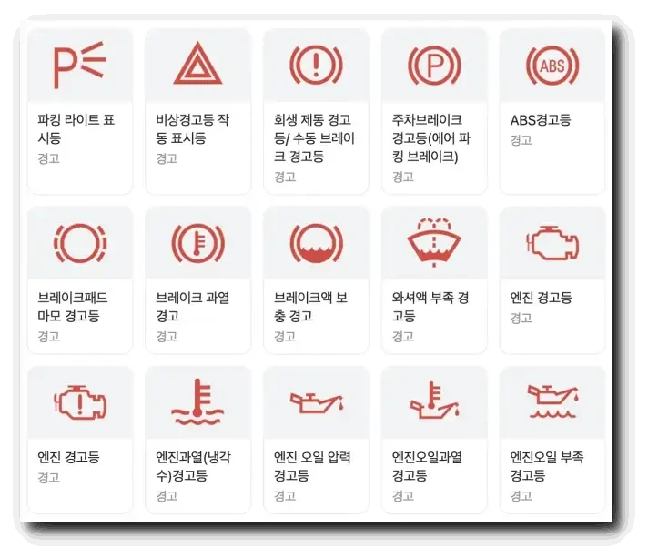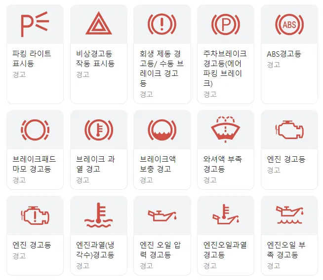 자동차 경고등은 단순한 알림이 아니라, 차량이 보내는 위험 신호입니다. 빨간색은 즉시 정차 및 점검, 주황색은 조속한 정비 필요, 녹색·파란색은 기능 작동 알림으로 구분해두면 상황에 맞게 대처할 수 있습니다.