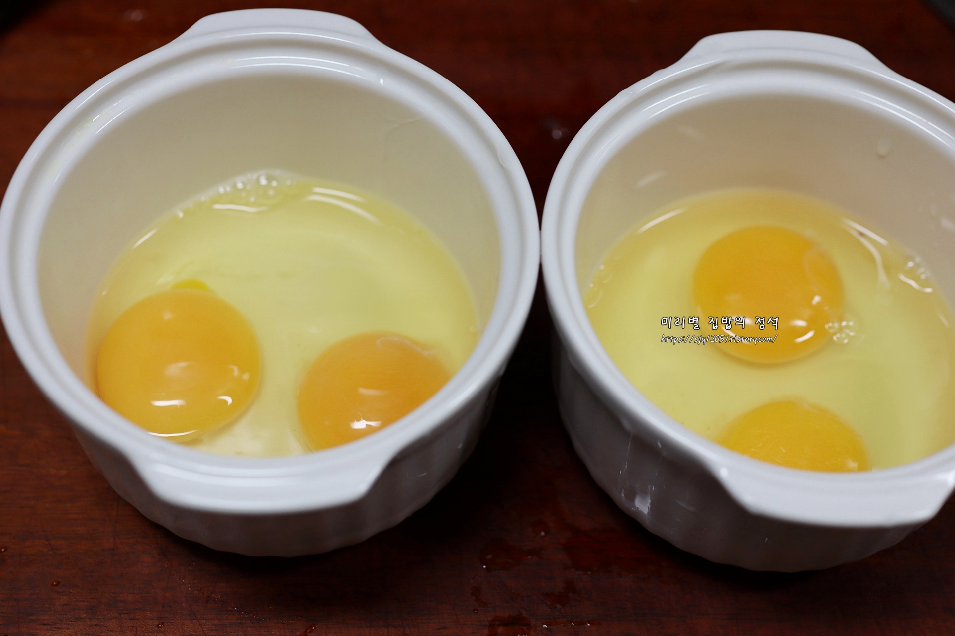 1) 계란과 액체 배합